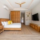 Bedroom 5: Bedroom with a king-size bed, WiFi, A/C, ceiling fan, TV, fridge, safe, ocean view, connected with kid's bedroom 6, shared bathroom with shower, vanity, and WC. 2 guests maximum