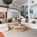 Perched on a cliffside, Villa Riva offers panoramic views of Koh Samui's mesmerizing waters. The villa is thoughtfully designed across multiple pavilions, including a social clubhouse, a master villa, and two separate guest pavilions known as Villas A & B. This unique layout ensures privacy for guests and provides a convenient setup for families staying together.