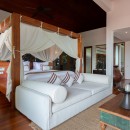 Bedroom 1: Upper level -Master bedroom with a king-size bed, ceiling fan, A/C, WiFi, TV, safe, sea view, sofa, private terrace, and en-suite bathroom with jacuzzi, indoor and outdoor shower, double vanity, and WC. 2 guests maximum
