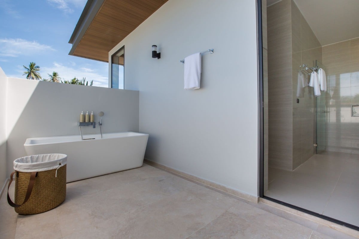 Bedroom 3: Bedroom with a king-size bed, WiFi, A/C, safe, ocean and garden view, en-suite bathroom with shower, outdoor bathtub, vanity, and WC. 2 guests maximum