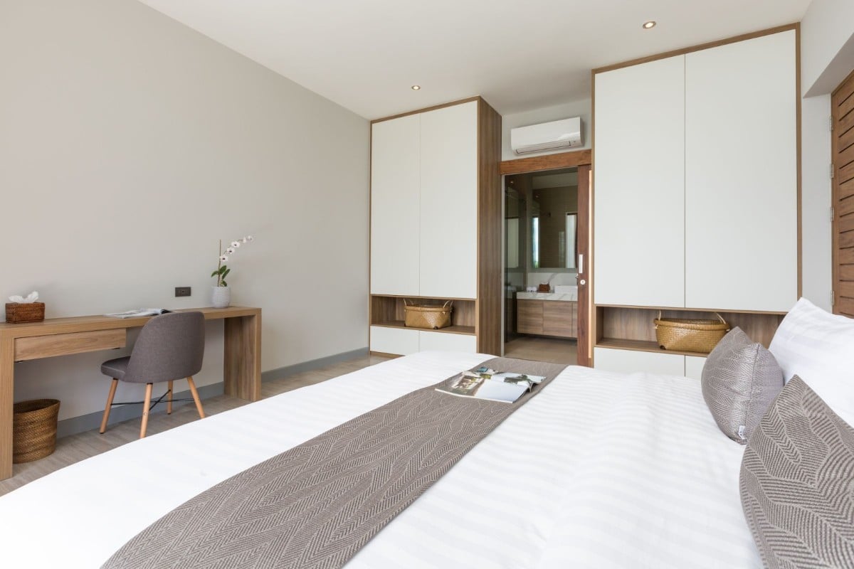 Bedroom 7: Kids bedroom with two bunk beds (single over queen bed), WiFi, A/C, TV, safe, private terrace, ocean view, en-suite bathroom with shower, vanity, and WC. 6 kids maximum