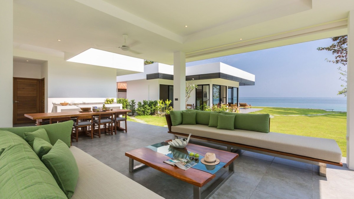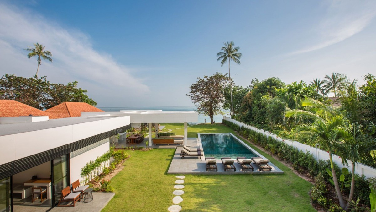Located in the serene coconut groves of Laem Sor, this private, low-rise villa blends contemporary comfort with tropical charm. The two-storey main house features spacious, air-conditioned living areas and three double bedrooms—all with sweeping sea views.