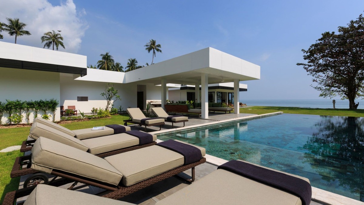 Tucked away on the tranquil south coast of Koh Samui, Villa Thansamaay is a modern, designer beachfront villa offering breathtaking views of the sea and outlying islands. With seven beautifully appointed double bedrooms and open-plan living spaces, this stunning retreat is ideal for family holidays or groups of up to 14 guests.