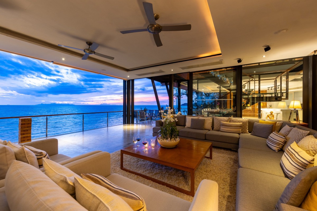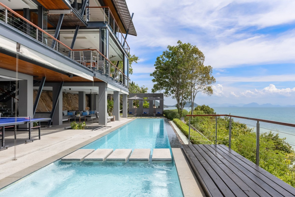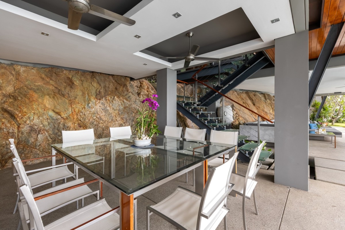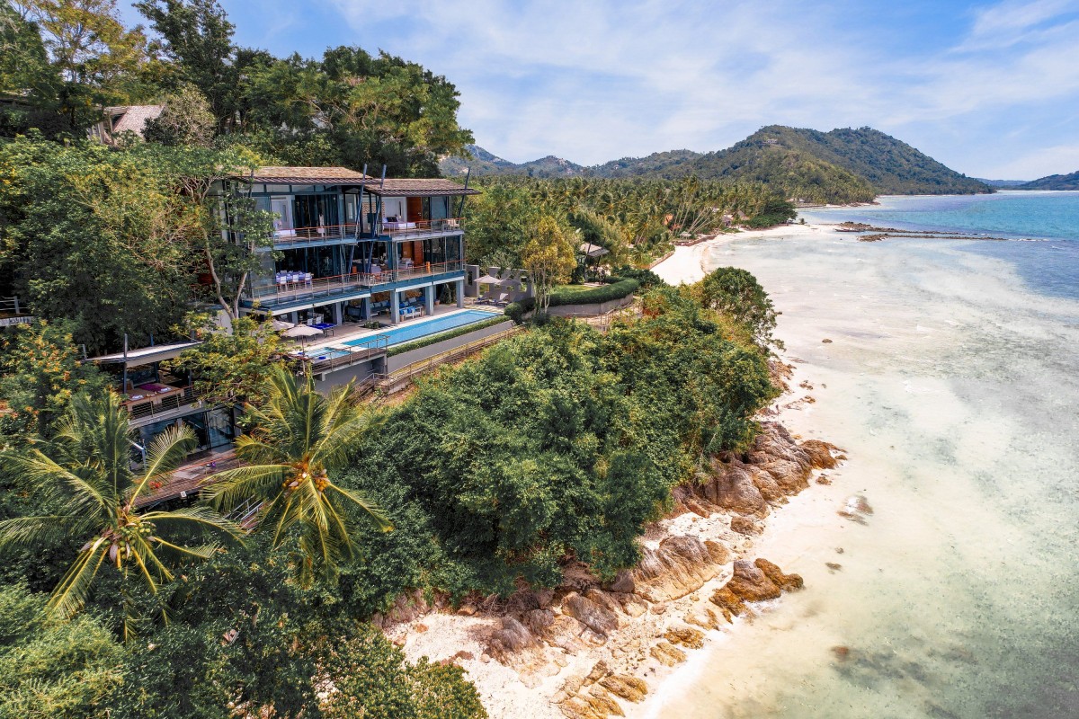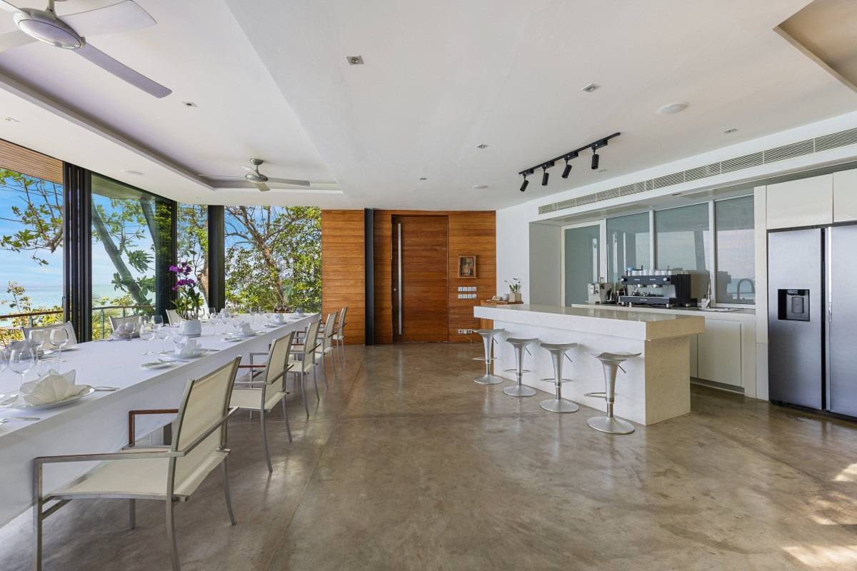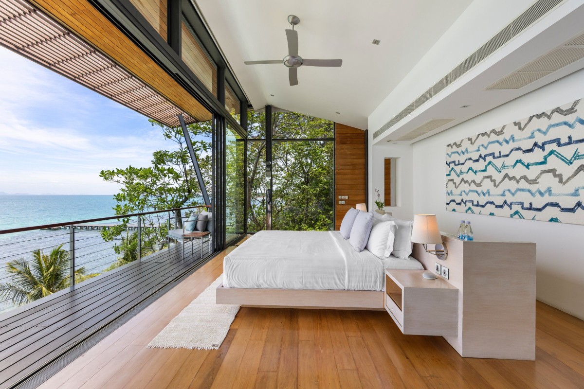 True to its name, this five-bedroom villa boasts panoramic 180-degree views of the West coast of Koh Samui. Each bedroom and living space is adorned with full-length glass doors, allowing you to immerse yourself in the stunning surroundings. Set against a natural cliff face, this villa offers bespoke accommodations, including a dedicated children's area, a tropical garden, and stylish outdoor spaces complete with a tranquil pond and waterfall.