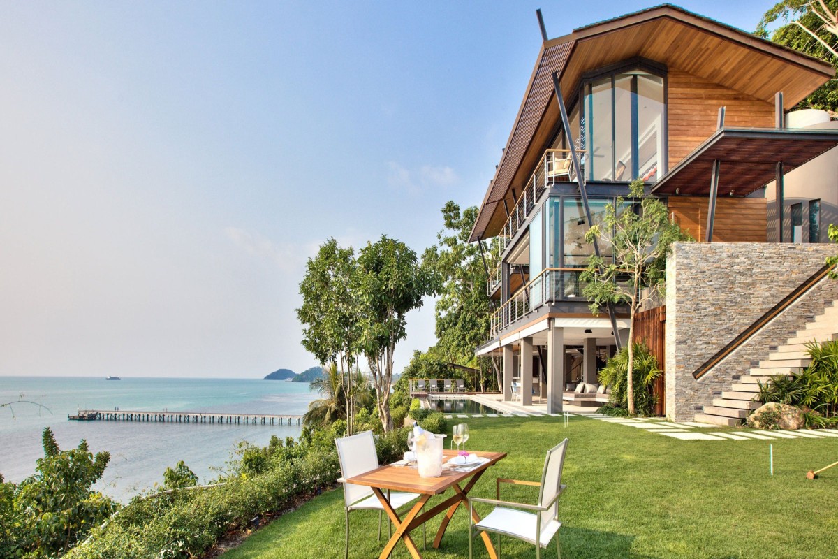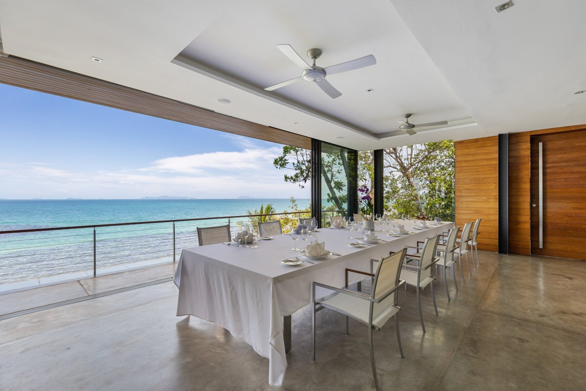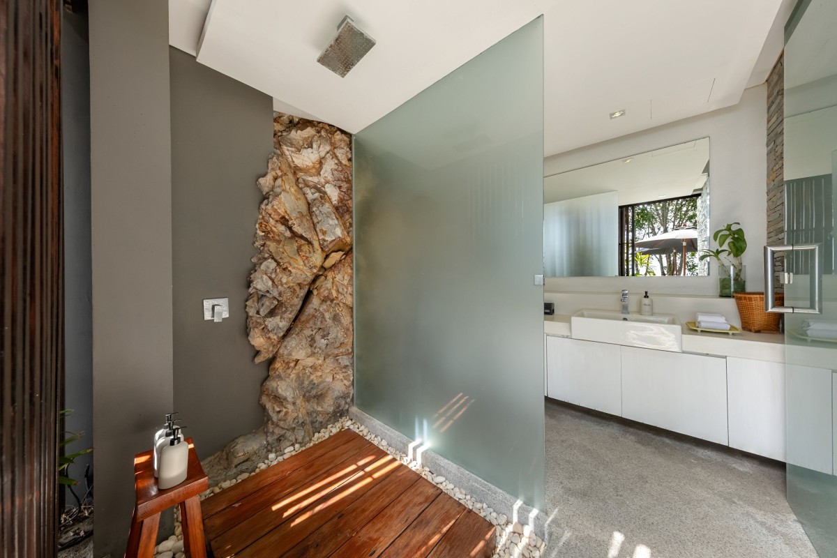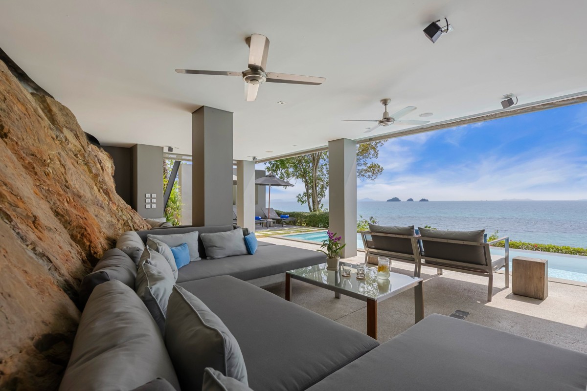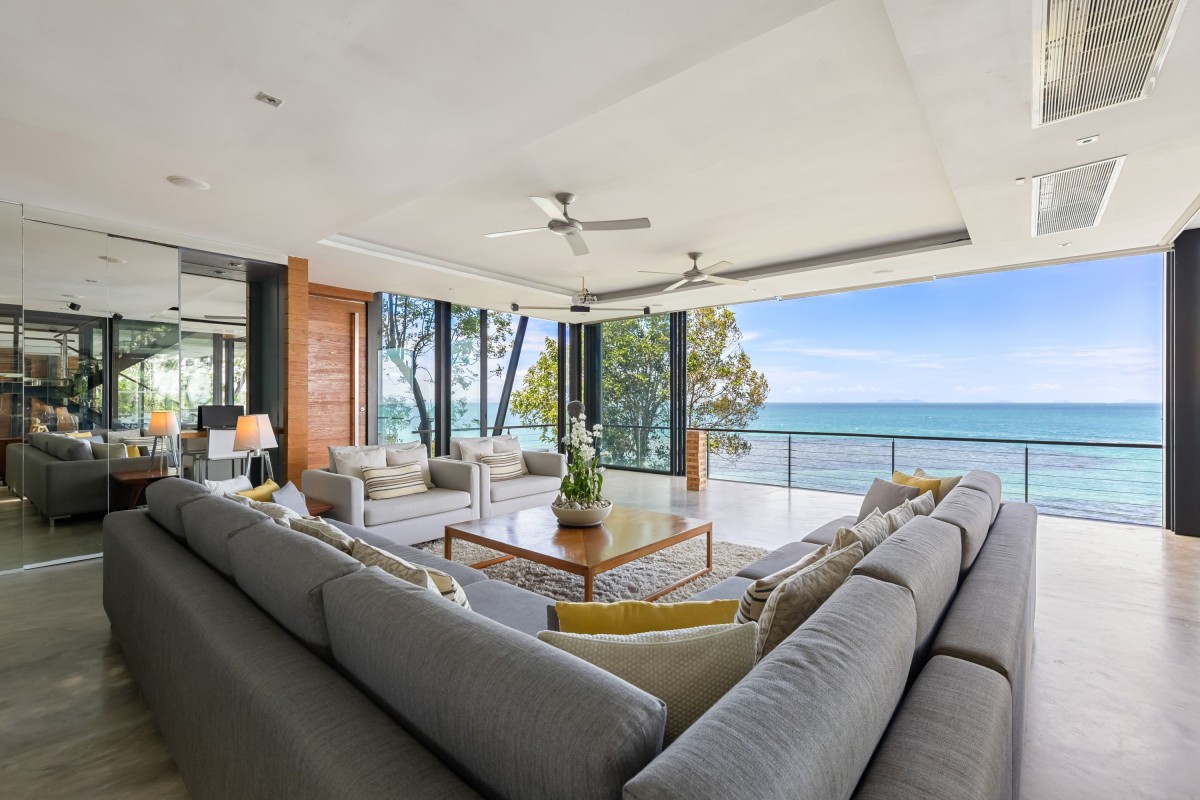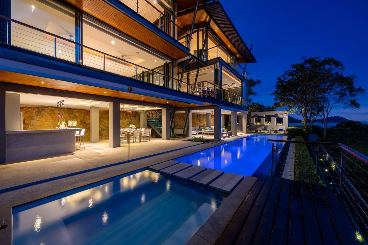 True to its name, this five-bedroom villa boasts panoramic 180-degree views of the West coast of Koh Samui. Each bedroom and living space is adorned with full-length glass doors, allowing you to immerse yourself in the stunning surroundings. Set against a natural cliff face, this villa offers bespoke accommodations, including a dedicated children's area, a tropical garden, and stylish outdoor spaces complete with a tranquil pond and waterfall.