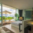 Bedroom 1: Master bedroom with a queen-size bed, A/C, WiFi, TV, desk, access to pool, sea view, and en-suite bathroom with double bathtub, shower, vanity, and WC. 2 guests maximum