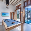 Entertainment and relaxation are seamlessly integrated throughout the villa. A game room, featuring a pool table, 65-inch smart TV, and a premium BOSE sound system, opens out to tranquil poolside views. For complete rejuvenation, the private spa room includes two massage beds, a plunge pool, and an outdoor rain shower—a true sanctuary for the senses. A well-appointed fitness center ensures guests can maintain their wellness routines in paradise.