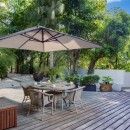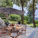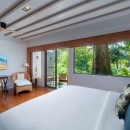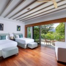 Bedroom 4: Lower level bedroom with 2 single beds (can be made up as a king-size bed), TV, WiFi, A/C, ceiling fan, working desk, garden view, access to balcony (Shared with bedroom 5), and en-suite bathroom with bathtub, rain shower, shower, double vanity, and separate WC. 2 guests maximum (conected with bedrooms 3)