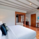 Bedroom 1: Upper level bedroom with 2 single beds (can be made up as a king-size bed), WiFi, A/C, ceiling fan, working desk, ocean and beach view, and en-suite bathroom with rain shower, shower, double vanity, and separate WC. 2 guests maximum