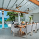 Inside, Villa Amankara exudes effortless sophistication. Expansive living and dining spaces offer panoramic sea views, while the formal dining room—seating up to 14 guests—provides an elegant setting for lavish dinners. A modern, fully equipped kitchen caters to every culinary whim.