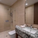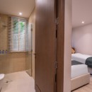 Bedroom 3: Main level Enclosed bedroom/no window with two single beds (can be made up as a king-size bed), AC, and en-suite bathroom with shower, rain shower, vanity and WC. 2 guests maximum