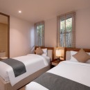Bedroom 4: Bedroom with two single beds (can be made up as a king-size bed), AC, garden view, and en-suite bathroom with shower, rain shower, vanity and WC with bidet. 2 guests maximum