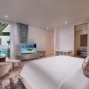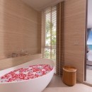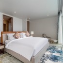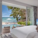 Bedroom 8: Upper level Master bedroom 4 with super king-size bed, sofa, working desk, Smart TV, AC, safe, access to balcony, pool, beach, see and sunset view, direct access to beach, and en-suite bathroom with bathtub, shower, rain shower, double vanities and WC. 2 guests maximum