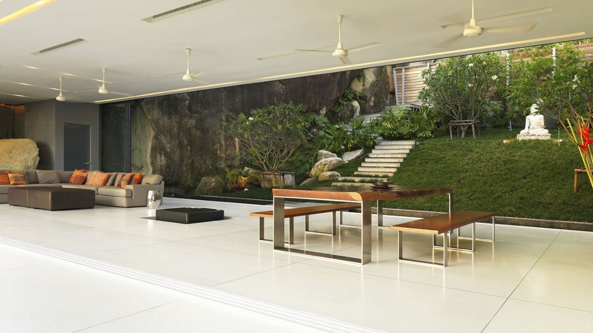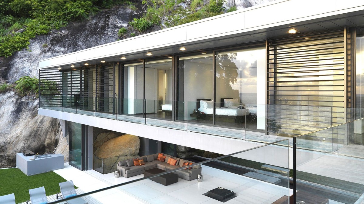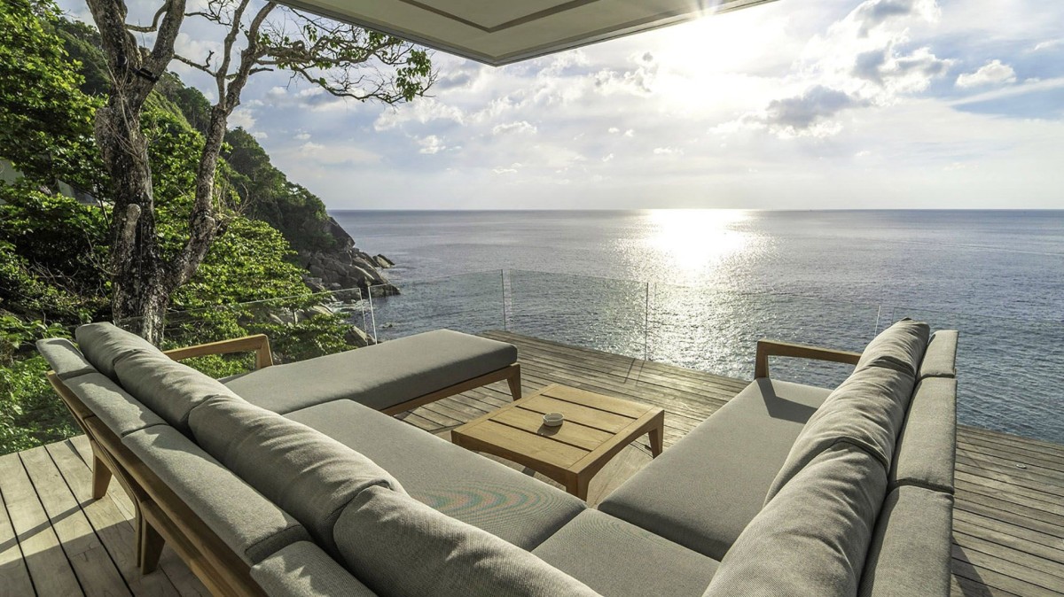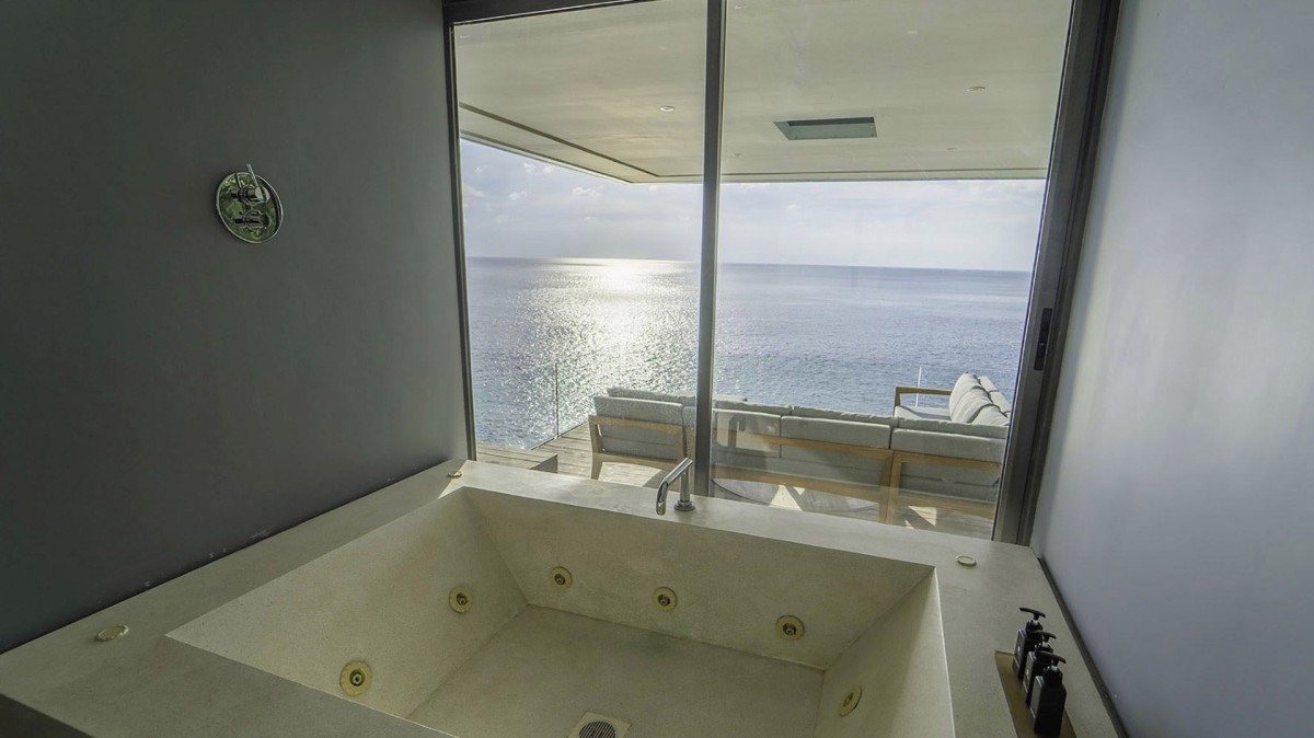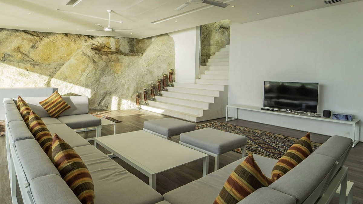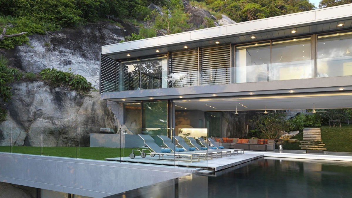 This award-winning architectural masterpiece seamlessly blends into its dramatic tropical surroundings. The villa’s unique design incorporates the natural rock face of the hill into its two lower levels, creating a striking backdrop. Every room boasts breathtaking views of the sea and sunsets, and the infinity-edge pool truly lives up to its name.