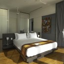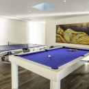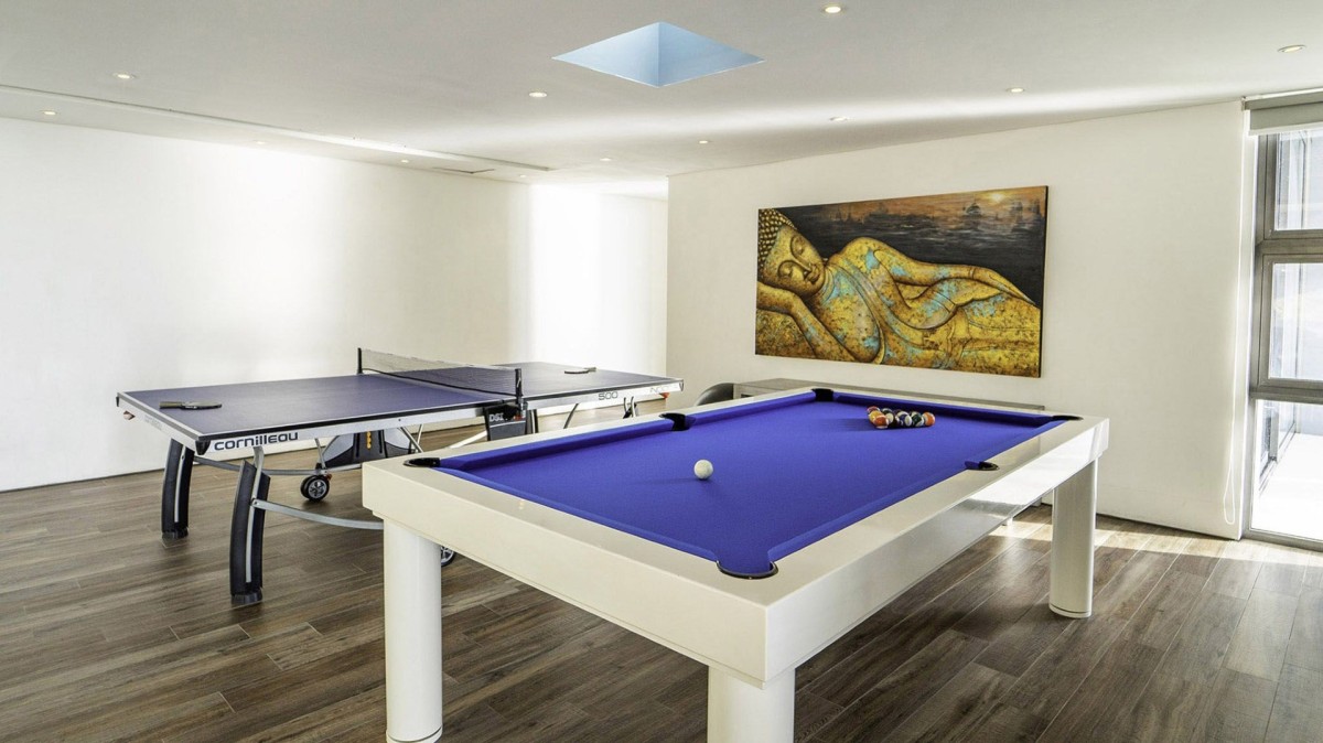 The villa’s modern interpretation of a traditional stilted Thai home features a bedroom wing elevated above the main living space, creating an open, breezy atmosphere that flows effortlessly to the pool terrace and garden. The open-plan living area, complete with a fully equipped kitchen, elegant dining area, and outdoor barbecue, invites relaxed gatherings in a lush, tropical setting. With an iPad-controlled sound system and high-tech lighting, you can set the perfect mood with ease. A stylish family room on the lower level provides even more space to relax, with a pool table and cozy lounging areas.