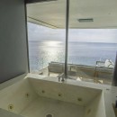 Bedroom 1: Upper level Master bedroom with a king-size bed, ceiling fan, A/C, WiFi, TV, DVD, balcony with terrazzo bathtub, sea view, and en-suite bathroom with shower, double vanity, and WC. 2 guests maximum