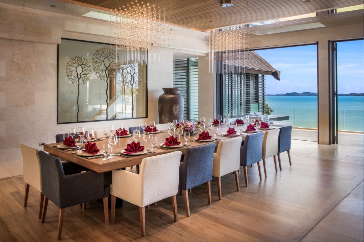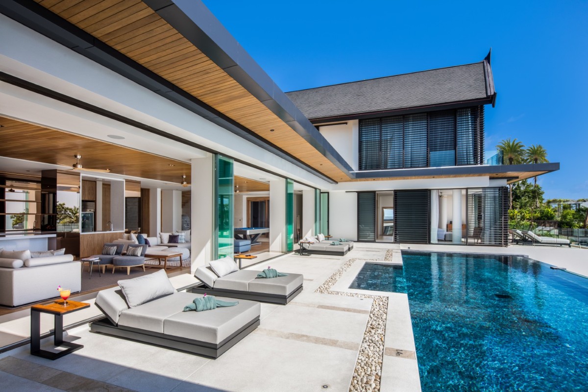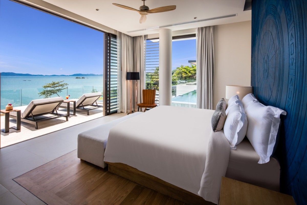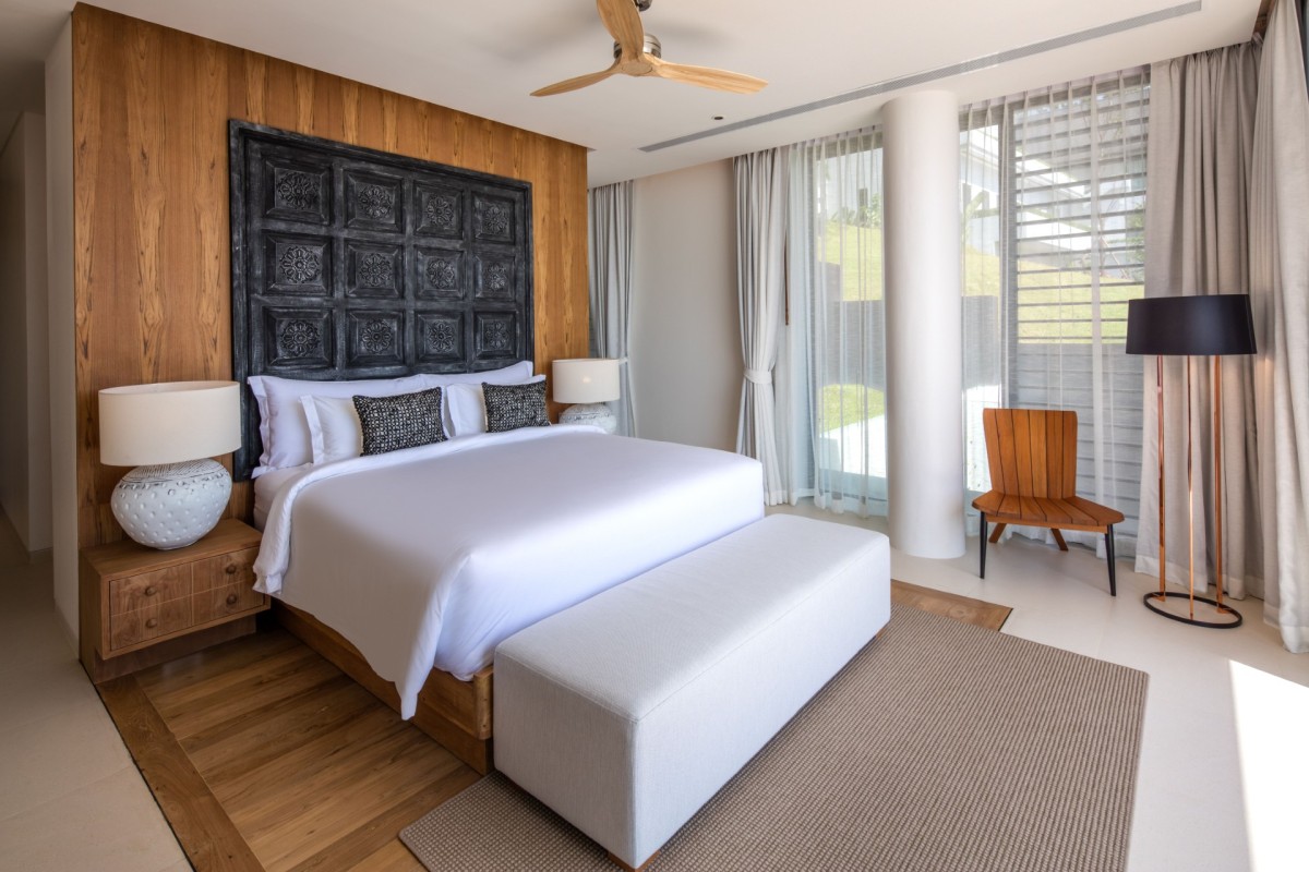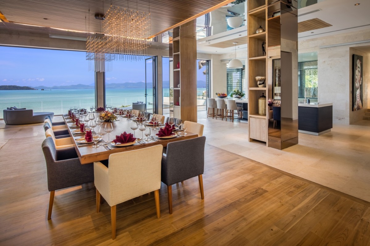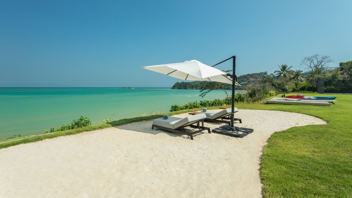 From the moment you arrive, Villa Amaravida makes an impression. Its beautifully arched entrance sets the tone for the elegance within, opening to a grand living area with soaring ceilings and exquisite design details. A dramatic floor-to-ceiling window frames sweeping views of the outdoor lounge and the sparkling Andaman Sea, offering a truly breathtaking welcome.