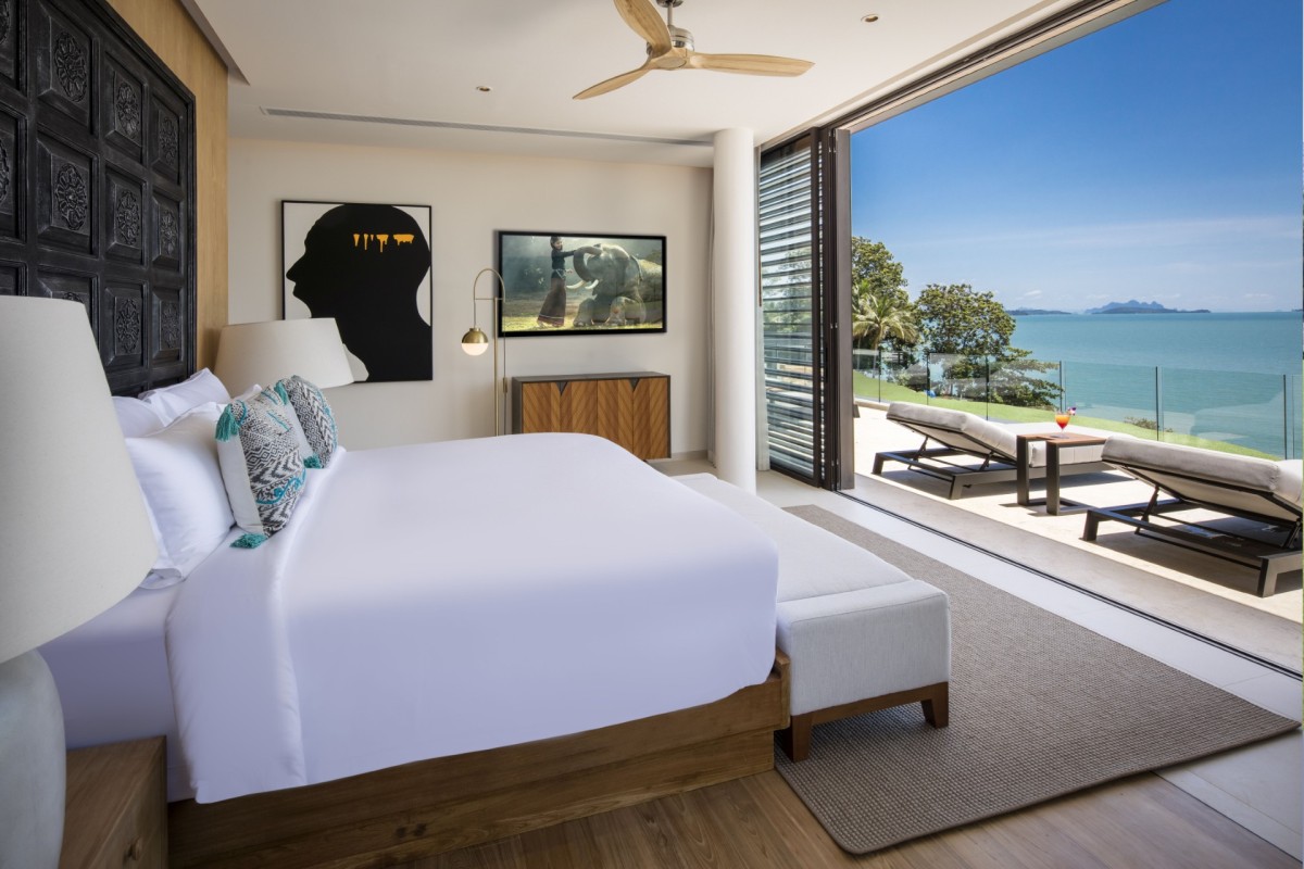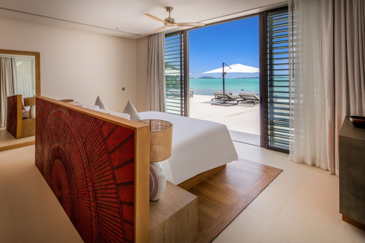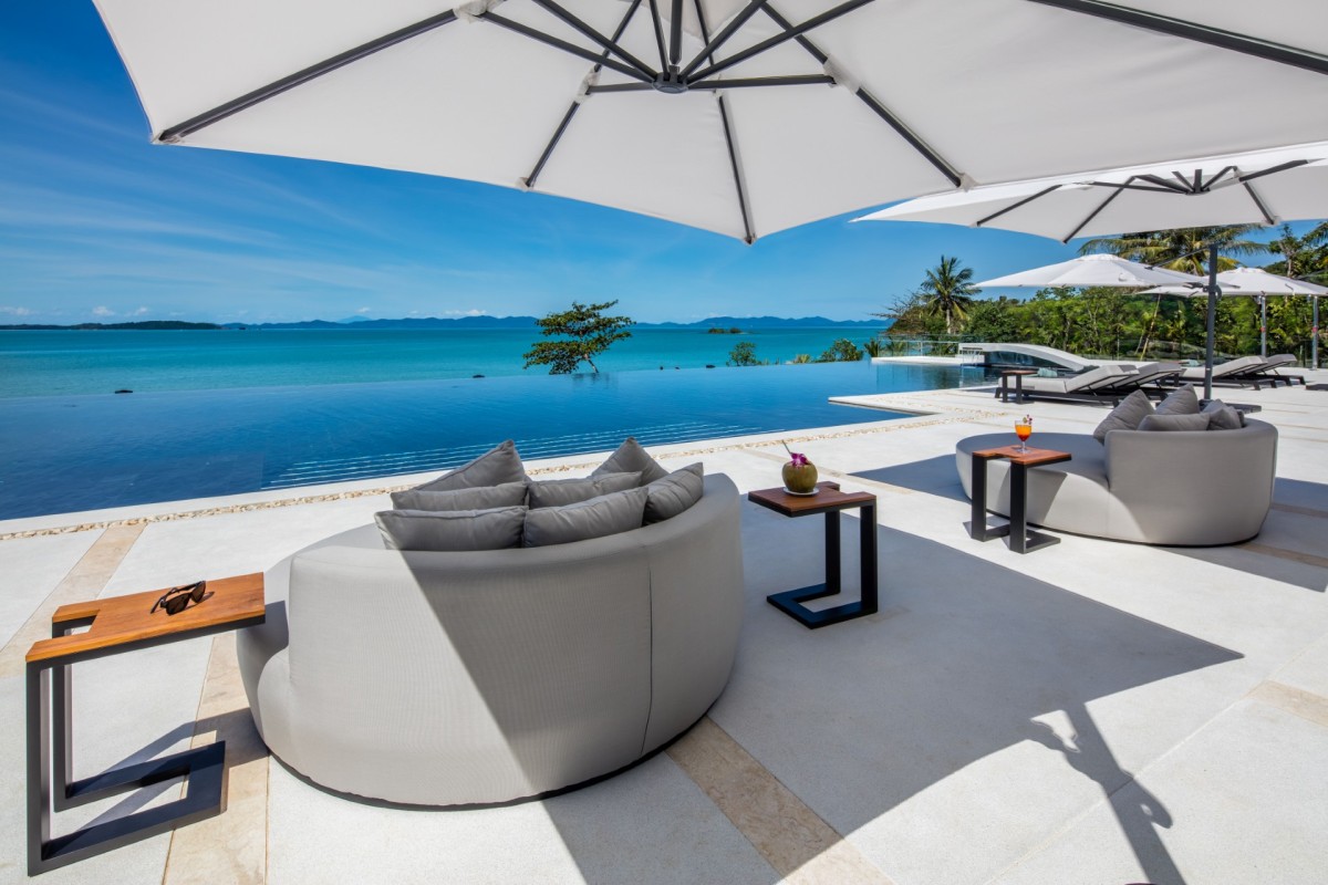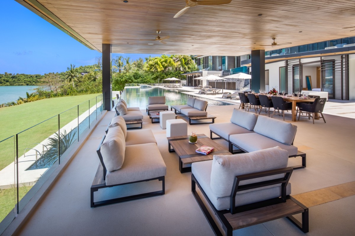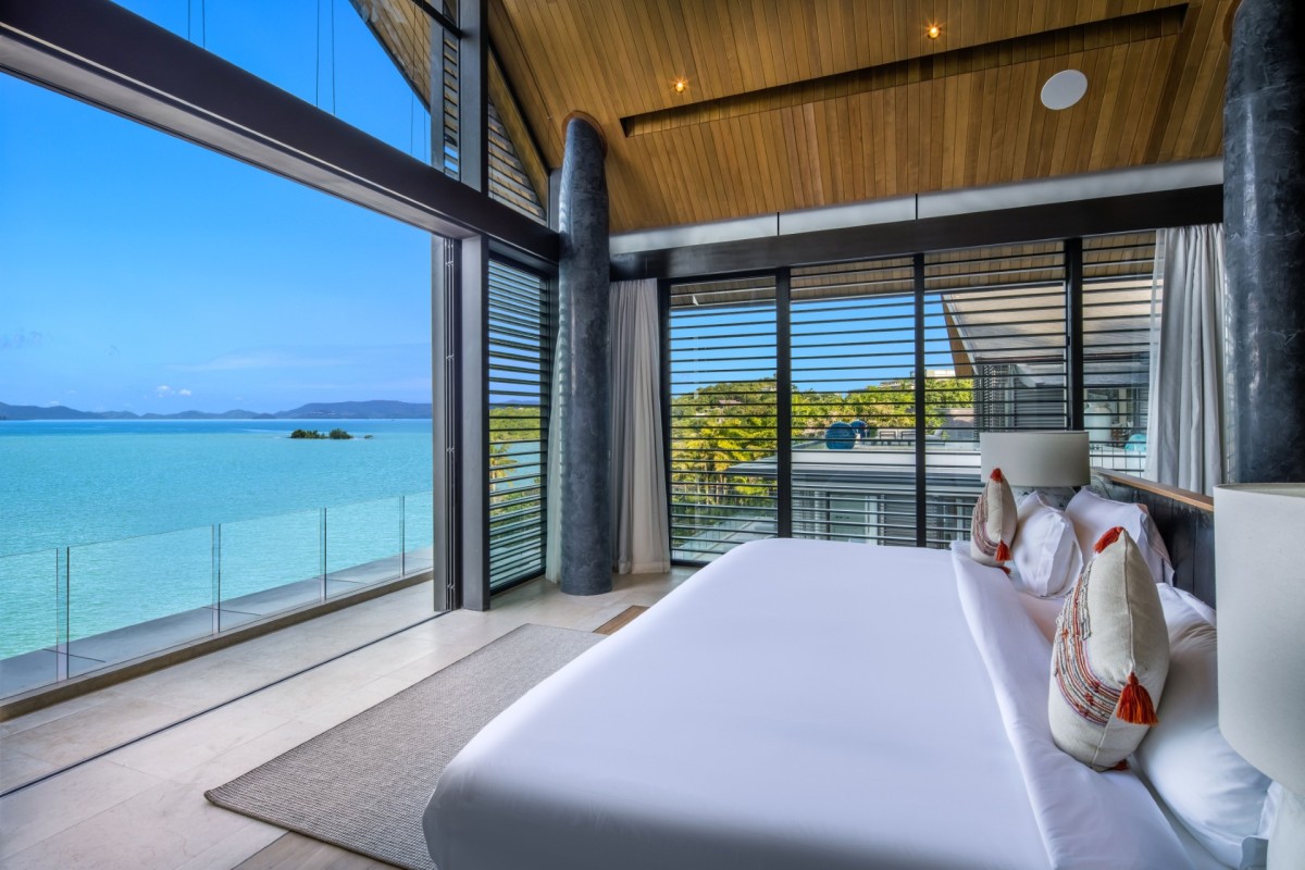 From the moment you arrive, Villa Amaravida makes an impression. Its beautifully arched entrance sets the tone for the elegance within, opening to a grand living area with soaring ceilings and exquisite design details. A dramatic floor-to-ceiling window frames sweeping views of the outdoor lounge and the sparkling Andaman Sea, offering a truly breathtaking welcome.