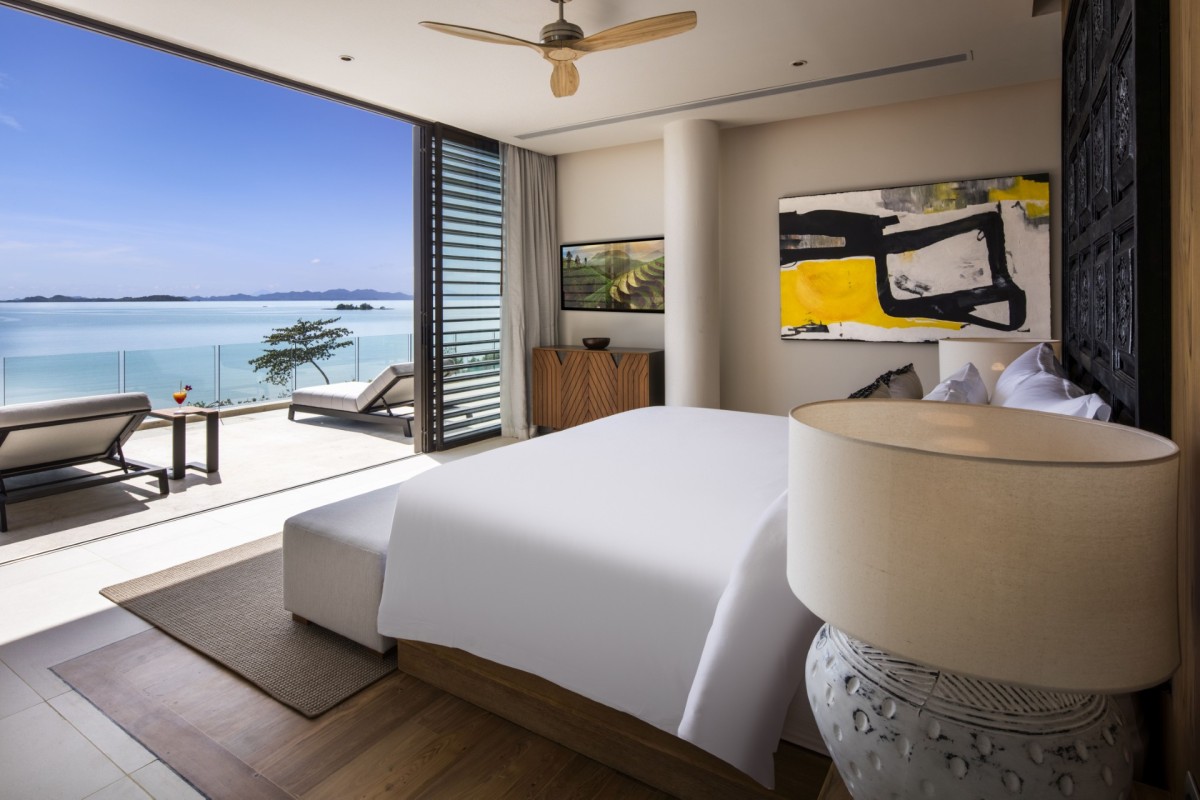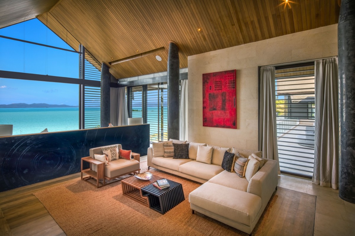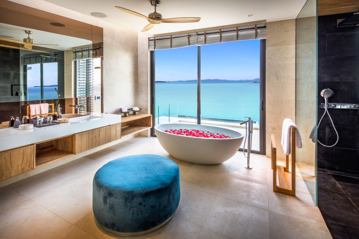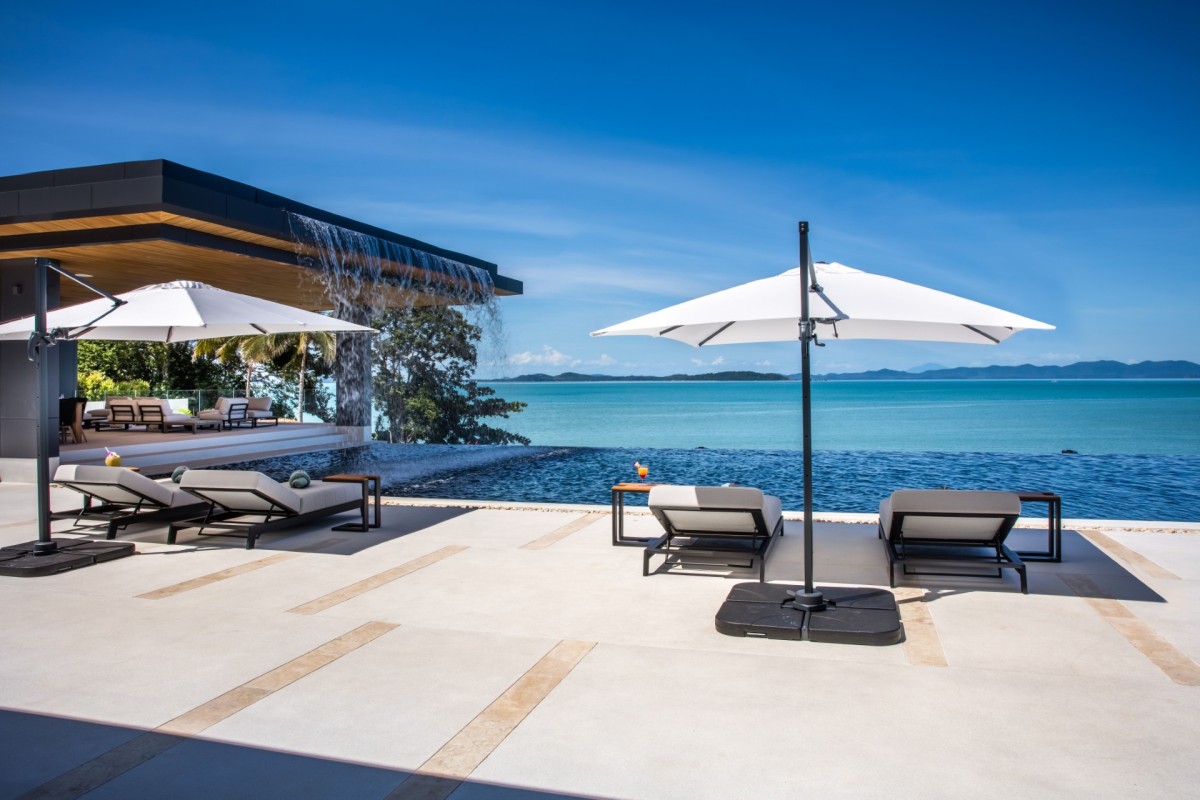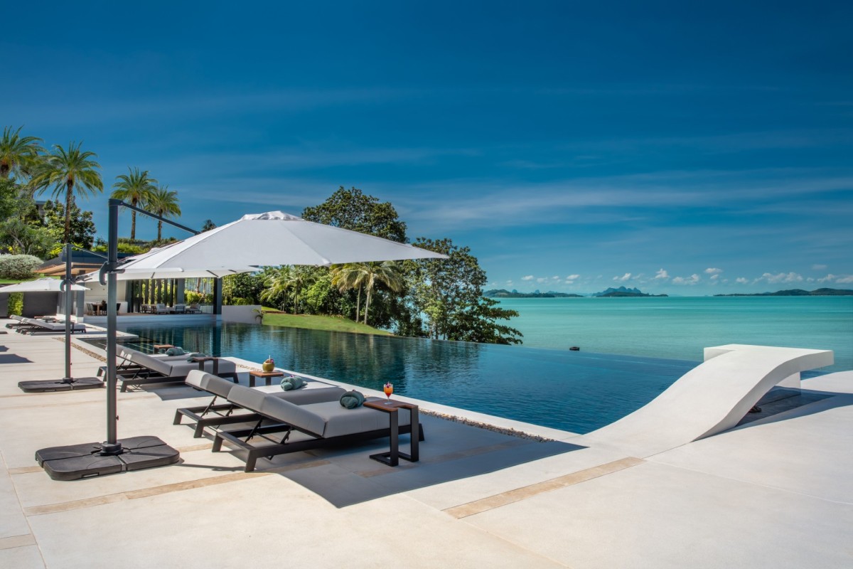 From the moment you arrive, Villa Amaravida makes an impression. Its beautifully arched entrance sets the tone for the elegance within, opening to a grand living area with soaring ceilings and exquisite design details. A dramatic floor-to-ceiling window frames sweeping views of the outdoor lounge and the sparkling Andaman Sea, offering a truly breathtaking welcome.