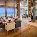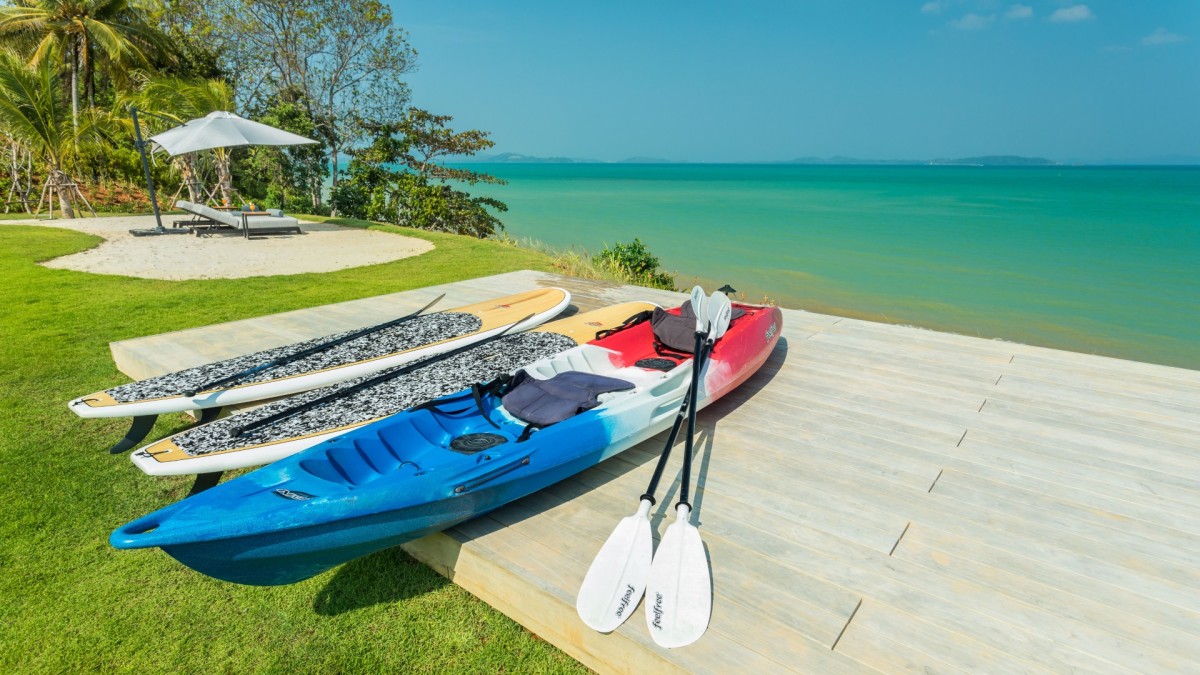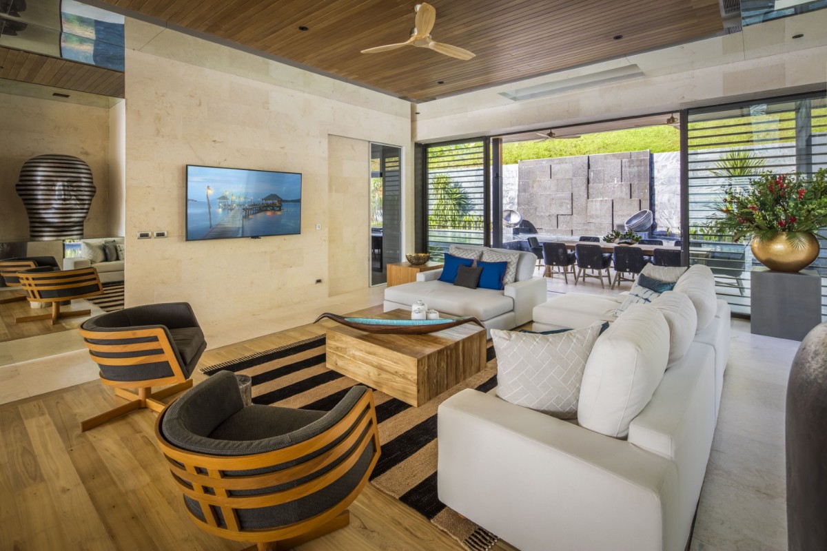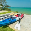 Designed with meticulous attention to detail, the villa includes a Sonance sound system, Apple TVs, and high-speed internet throughout. Outdoor adventures await with kayaks, paddle boards, and even a man-made beach that’s perfect for families. Culinary experiences are elevated with a gourmet American kitchen and elegant wine cellar.