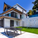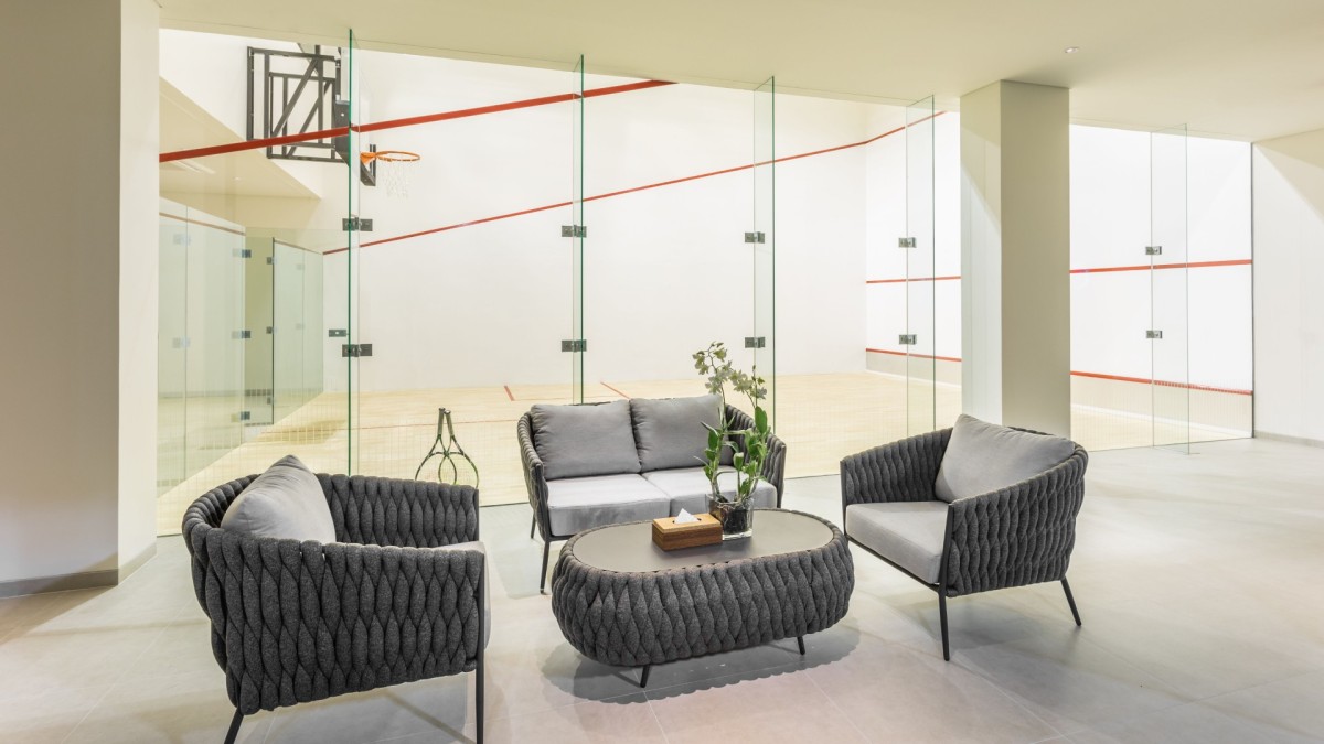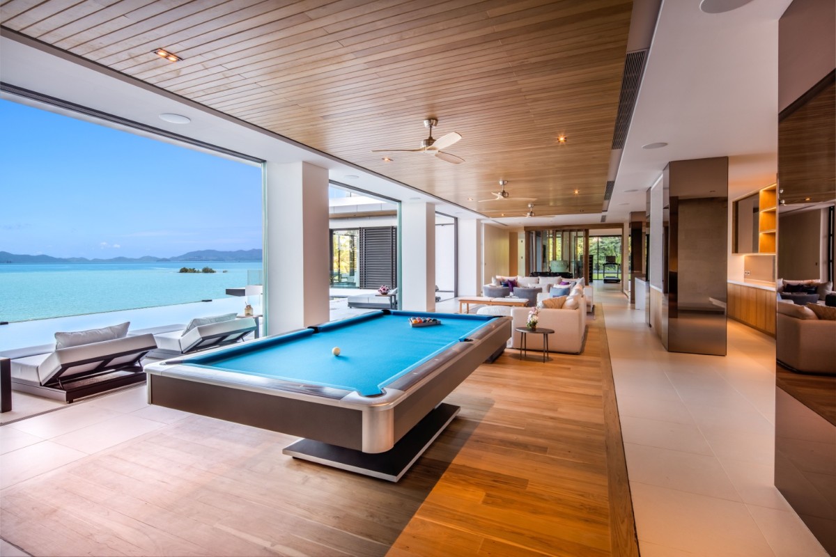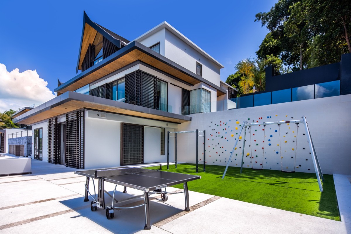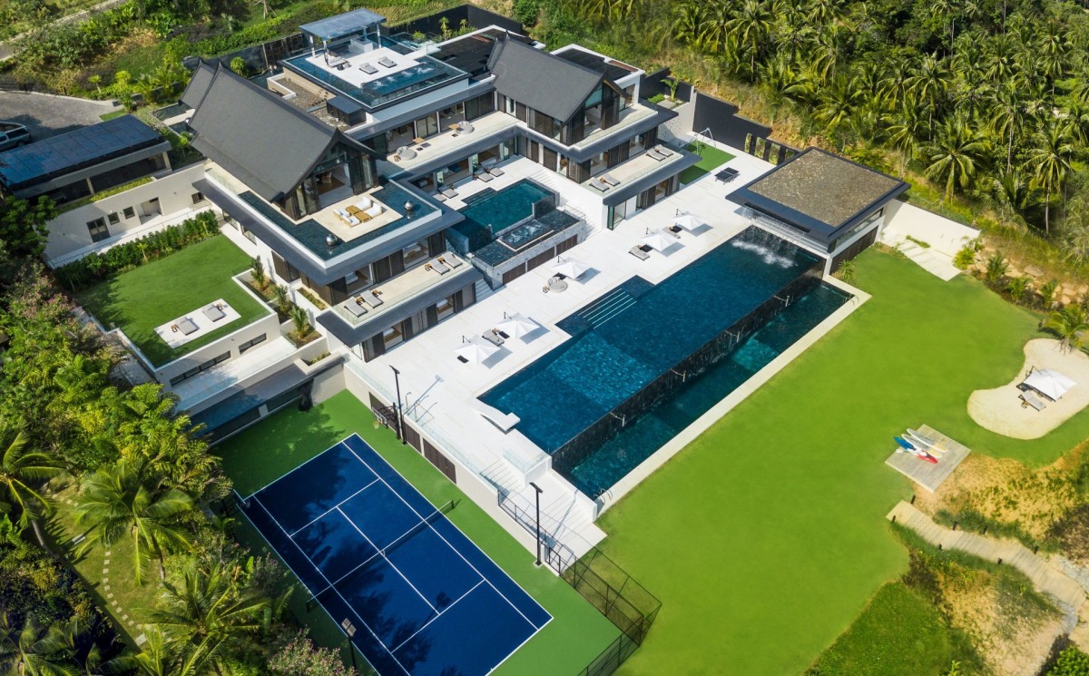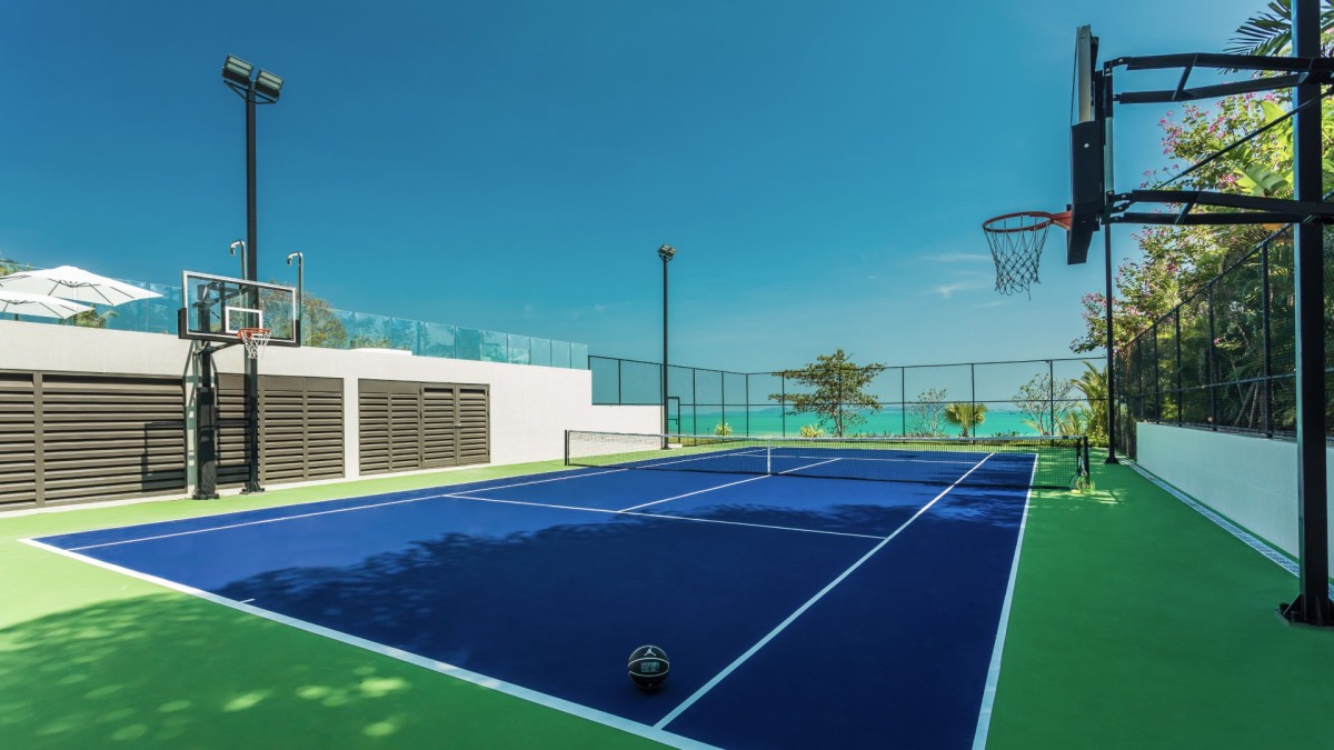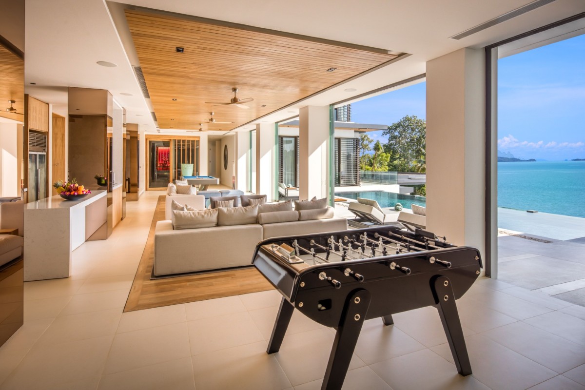 Every element of wellness and entertainment has been thoughtfully considered. Guests can enjoy a private cinema, serene spa facilities with steam and sauna, and a fully equipped fitness room. For those seeking active recreation, the villa also features a squash court, tennis and basketball courts, and an entertainment lounge complete with a Trackman Golf Simulator, pool table, and foosball.