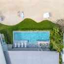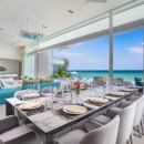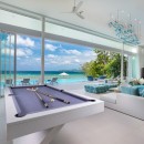 Outdoors, the infinity-edge pool overlooks the ocean and includes a shallow section ideal for young swimmers. Two shaded lounges provide a breezy escape for reading, relaxing, or simply enjoying the view. A private pathway leads directly to the villa’s exclusive beachfront.