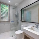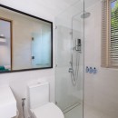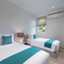 Bedroom 5: Upper level bedroom with two single beds, AC, safe, and en-suite bathroom with shower, rain shower, vanities and WC with bidet. 2 guests maximum