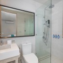 Bedroom 2: Main level bedroom with two single beds, AC, safe, and en-suite bathroom with shower, rain shower, vanities and WC with bidet. 2 guests maximum