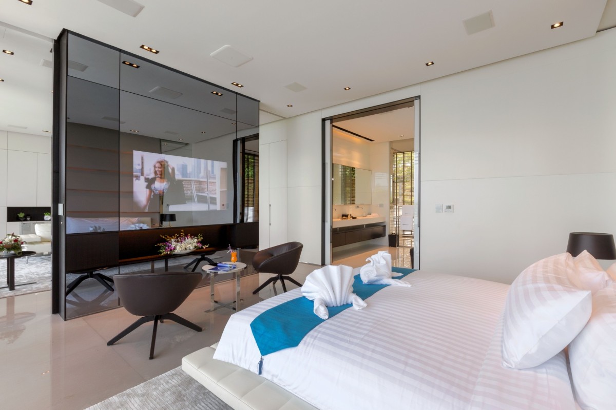 The spectacular 20-meter infinity-edge swimming pool forms the centerpiece of the outdoor deck. Flanked by twin Jacuzzis and relaxed lounging areas, it provides the perfect setting to soak up Phuket’s warm tropical climate or admire the serene beauty of Ao Yon Bay.