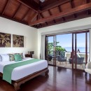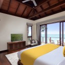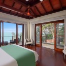Bedroom 6: Lower floor bedroom with a king-size bed, A/C, ceiling fan, TV, WiFi, safe, sea view, outdoor Jacuzzi, and en-suite bathroom with shower, vanity and separate WC. 2 guests maximum.