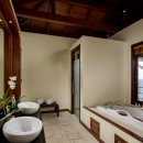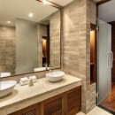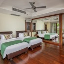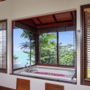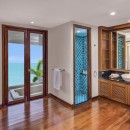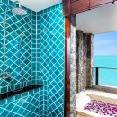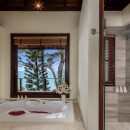 Villa Horizon boasts elegant, sweeping gazebo roofs adorned with a natural muted color palette and soft ambient lighting, perfectly complementing its sophisticated interior decor. Covered walkways with overhead wooden fans create a harmonious and natural atmosphere, while the spacious rooms feature natural wooden floors and sleek furnishings adorned with sophisticated fabrics. The villa's interior is thoughtfully enhanced by restrained accents of Thai design and creatively styled wooden ceilings. Floor-to-ceiling glass windows seamlessly merge indoor and outdoor spaces, inviting you to relax and indulge in the breathtaking vistas of the Andaman Sea and lush surroundings.