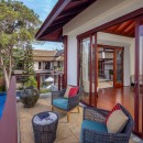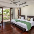Bedroom 4: Main floor bedroom with a king-size bed(can be converted to two single beds), A/C, ceiling fan, TV, WiFi, safe, garden view, balcony, and shared bathroom(with room 3) with shower, double vanity and separate WC. 2 guests maximum.
