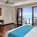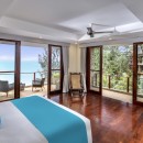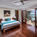 Bedroom 3: Main floor bedroom with a king-size bed, A/C, ceiling fan, TV, WiFi, safe, sea view, balcony, and shared bathroom(with room 4) with shower, double vanity and separate WC. 2 guests maximum.