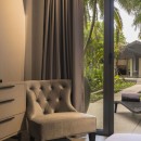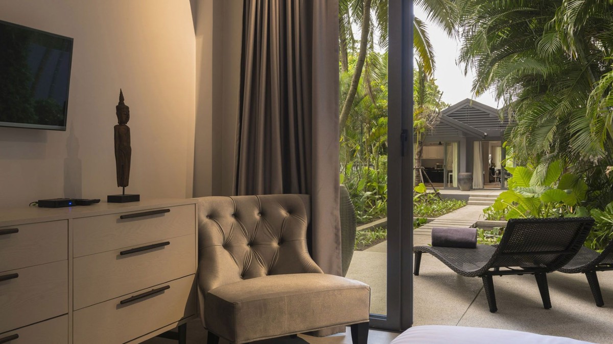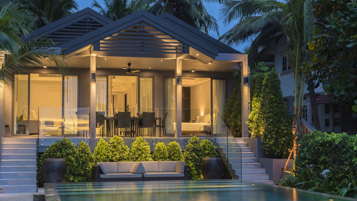 Designed with a minimalist aesthetic, Infinity Blue combines crisp white and cool grey tones with vibrant tropical surroundings. The 15-meter beachfront pool stretches toward the sea, creating the perfect spot to soak up the views or unwind with a swim. The villa is arranged across two pavilions, housing four elegant bedrooms, with a tranquil koi pond garden flowing between them.