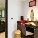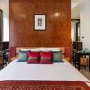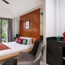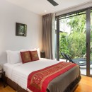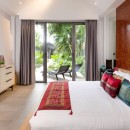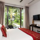 Bedroom 4: Bedroom with a queen-size bed, ceiling fan, A/C, WiFi, TV, desk, access to shared terrace, garden and koi pond view, and en-suite bathroom with rain shower, vanity, and WC. 2 guests maximum