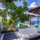 Outside, the expansive terrace invites guests with its infinity swimming pool, where they can bask in the warm tropical sun or take a refreshing dip amidst the backdrop of azure waters. A gazebo offers a shaded retreat for al fresco dining or intimate gatherings, while a private gym/yoga room provides the perfect setting for maintaining wellness and vitality during your stay.