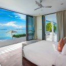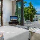 Bedroom 3: Pool level bedroom with a king-size bed, A/C, ceiling fan, TV, DVD player, Apple TV, safe, walk-in closet, access to pool terrace with ocean views and en-suite bathroom with rain shower, double vanity and separate WC. 2 guests maximum.