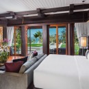 Bedroom 1: Entrance level Master bedroom with a king-size bed, A/C, lounge area, TV, safe, her and his closet, working desk, private terrace, ocean and garden view, and en-suite bathroom with bathtub, rain shower and shower, double vanity and separate WC. 2 guests maximum