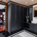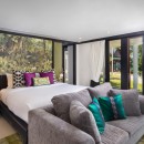 Bedroom 5: Pol level family bedroom with a king-size bed, sofa, A/C, TV, safe, her and his closet, working desk, private terrace, ocean and garden view, and shared bathroom (with bedrooms 6&7) with rain shower and shower, double vanity and WC. Connected with kids bedrooms 6 and 7. 2 guests maximum