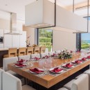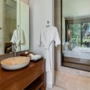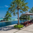 Interior spaces are elegantly understated, with natural tones and clean design that reflect the villa’s calm surroundings. Floor-to-ceiling windows offer lush garden and sea views from the open-plan living, dining, and kitchen areas. For added comfort, a full-time butler and private chef ensure a seamless, resort-style experience throughout your stay.