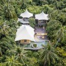 Begin your day by awakening in the opulent master bedroom suite. Walk through your exclusive dressing area to reach a magnificent open-air bathroom. Afterward, head down to the dining area to savor a private breakfast in the seclusion of this retreat. Carry on to the entertainment pavilion, where you can unwind with a leisurely game or two, or take a refreshing dip in your half-moon pool following treatments on your very own private spa deck.