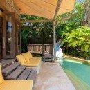 Bedroom 1: Ground floor Master bedroom with a king-size bed, A/C, ceiling fan, WiFi, safe, dressing room and en-suite open-air bathroom with steam room, bathtub, shower, vanity and WC. 2 guests maximum.