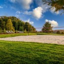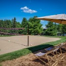 The property itself boasts expansive outdoor spaces, including a large wrap-around deck and a grassy lawn with a firepit and seating for eight. A boardwalk leads to a spacious 20x24 dock equipped with Wi-Fi, perfect for enjoying beautiful swimming conditions or lounging on the water trampoline. Additionally, the Olympic-sized beach volleyball court and ample meadows provide plenty of opportunities for recreation and relaxation.