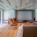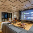 Inside, the fully equipped kitchen features high-end appliances and plenty of seating at the bar, making it ideal for entertaining. The great room invites you to unwind with a leather couch, gas fireplace, and custom cement panels. The Muskoka room, with its bug-free screens and cozy gas fireplace, is perfect for gatherings, accommodating dining for up to 12. The lower level media room enhances the experience with its large projector screen and Dolby Atmos surround sound, complemented by a fitness area with yoga mats.