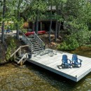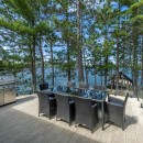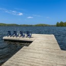 Welcome to Rose Point, a stunning lakeside retreat surrounded by expansive level land and winding forest trails. The property boasts a 400 square foot deck with frameless glass railings that offer panoramic views of the water. It's the perfect spot for gatherings, equipped with seating for 16, a Napoleon propane BBQ, and a beautiful timber frame lakeside gazebo pavilion. Two large Cedar docks with Muskoka chairs provide ample space for sunbathing and diving into the water, complemented by stairs leading directly into the lake. At sunset, guests can gather around the large firepit, enjoying the breathtaking views from 14 Muskoka chairs scattered along the waterfront.