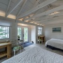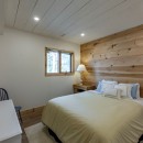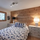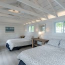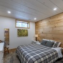 For fitness enthusiasts, the gym features a Peloton Bike and free weights, ensuring guests can maintain their workout routines. The spacious bunkie offers a serene retreat with two queen-size beds and panoramic lake views, perfect for a peaceful night's rest.