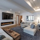 A highlight of the property is the 400 square foot screened Muskoka room, comfortably accommodating 16 guests with its Napoleon BBQ and Sonos sound system—an ideal space for outdoor dining and relaxation. Downstairs, a second living area provides plenty of seating and a large 72-inch TV for entertainment.
