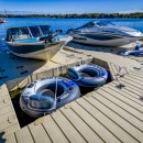 The outdoor spaces are a paradise unto themselves, with meticulously landscaped gardens, charming bridges, and multiple fire pit areas scattered around the property. A large flat lawn beside the Guest Cottage is perfect for enjoying various games like spike ball, bocce ball, and volleyball. Down by the waterfront, a private paved boat launch makes it effortless to explore the serene lake, while another fire pit area invites you to unwind under the stars, enjoying the shimmering reflections on the water.