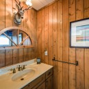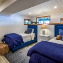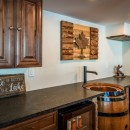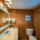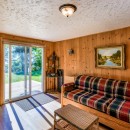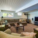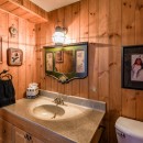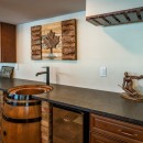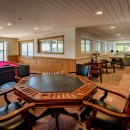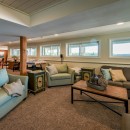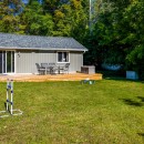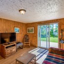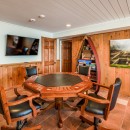The lower level of the main cottage is dedicated to entertainment, featuring a cozy rec room with plush seating, a large flatscreen TV, and a bubbletop hockey table. Adjacent to it, the games room is equipped with a wet bar, mini fridge, poker table, TV, pool table, and shelves stocked with board games, ensuring endless indoor entertainment options.