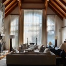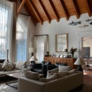 The main floor's Great Room commands attention with its soaring ceilings and tall windows, offering breathtaking views and a tranquil ambiance. The modern kitchen features high-end Sub Zero appliances, ample prep and cooking space, and a central island with seating for five. A well-equipped utility area, complete with laundry facilities and a Miele built-in espresso machine, adds to the convenience.